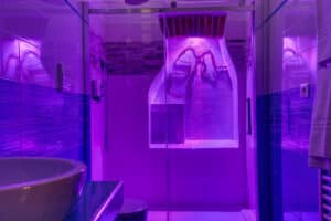 Camera con connessione WiFi gratuita, vista sul giardino e bagno privato esterno.Max 5 persone